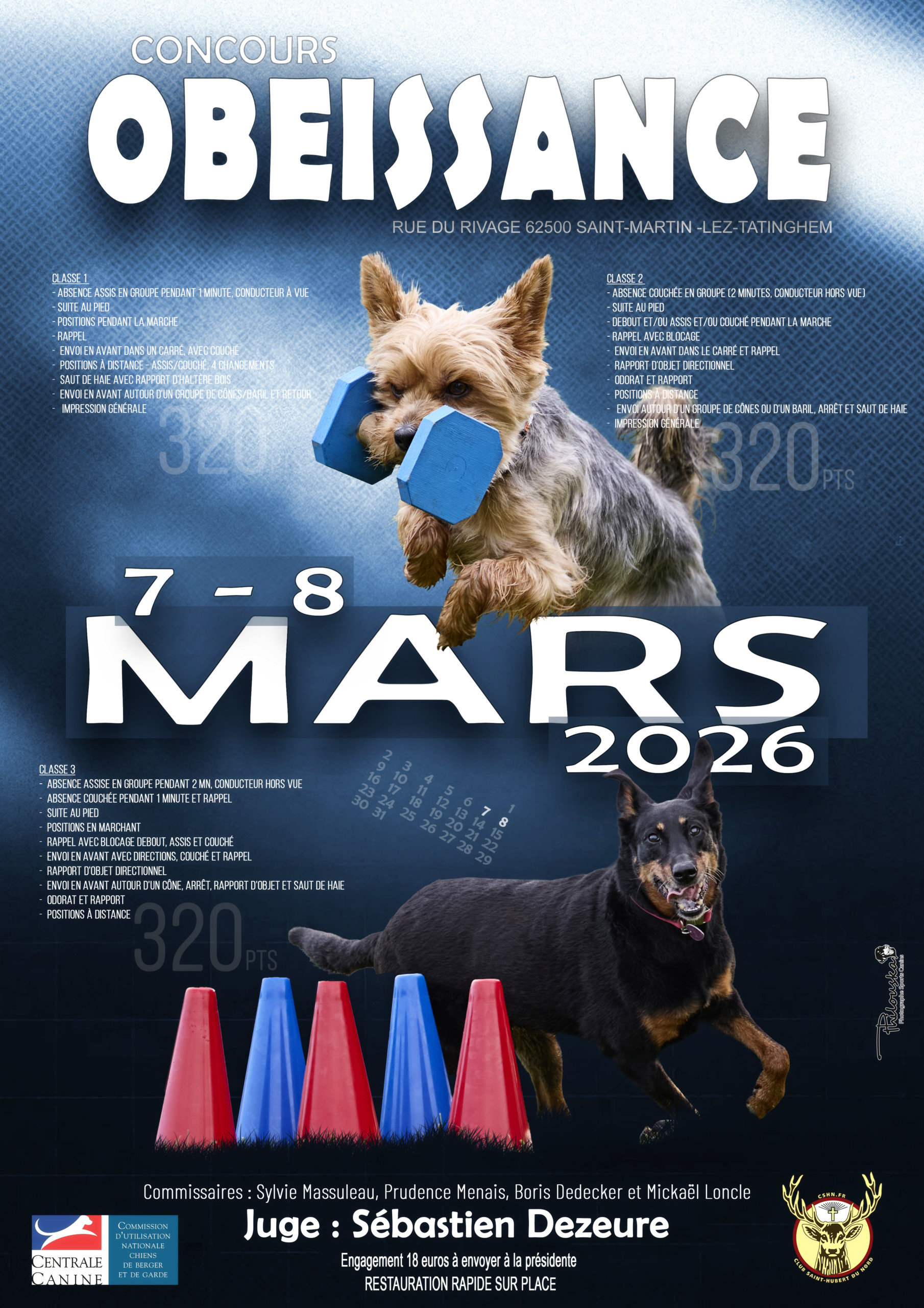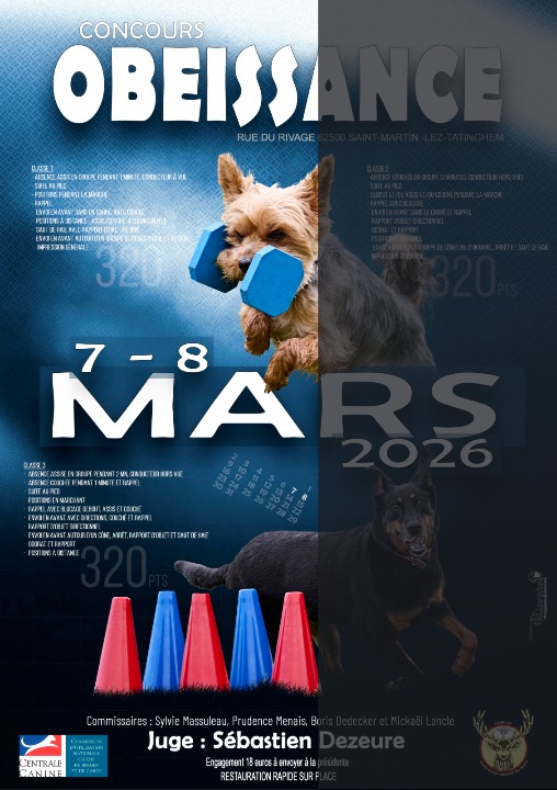 Pour tous : pour ceux qui ne l’ont pas vu ou pas fait, pouvez vous m’adresser vos besoins en formation : Entraineur – Moniteur habilité au mordant, stage Moofa ou Commissaire en obéissance.